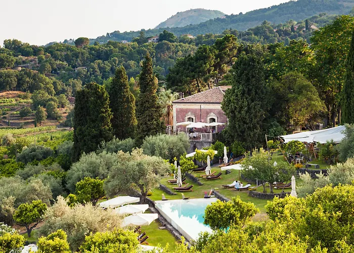 The 5-star Monaci Delle Terre Nere Hotel Zafferana Etnea is located in Zafferana Etnea, 2.9 km from the open air museum "Museo Sicilia in Miniatura", and offers a seasonal outdoor swimming pool. Featuring 26 rooms with views of the sea, the hotel is 10 minutes' drive from Dagala del Re.